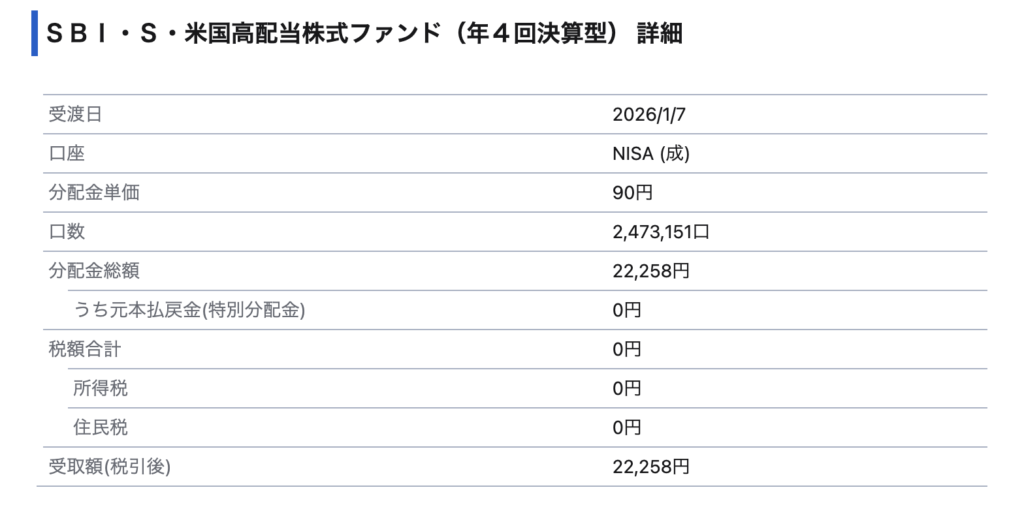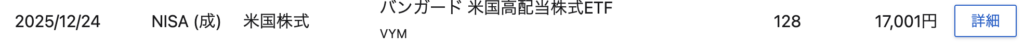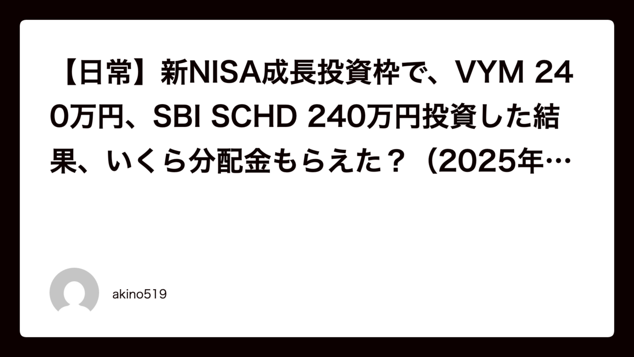 【日常】新NISA成長投資枠で、VYM 240万円、SBI SCHD 240万円投資した結果、いくら分配金もらえた?(2025年12月分)