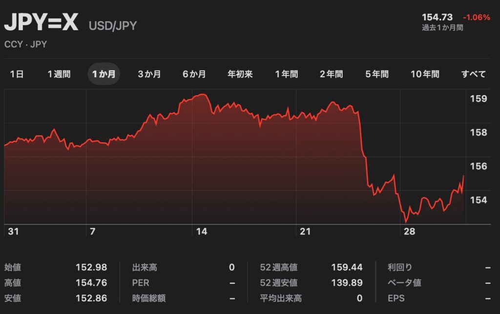 1月末に大きく、円高方向に進みました。アメリカからの為替介入はなかったとのことですが、短期間で非常に大きな値動きでした。