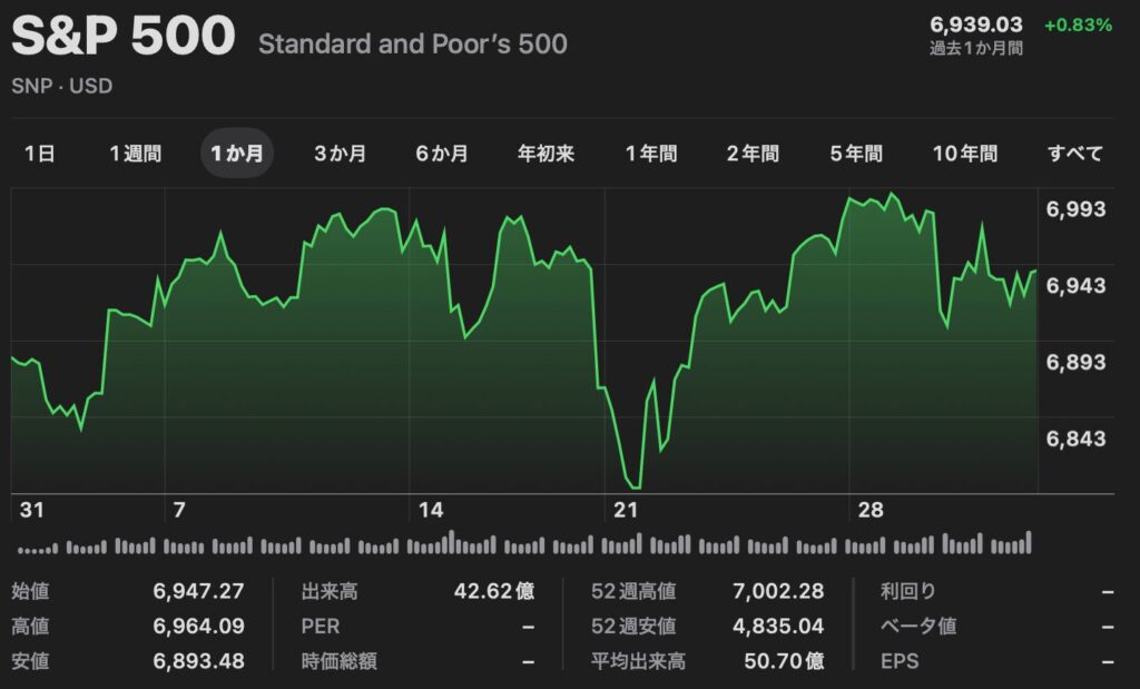 SP500は+28.53%、オルカン(除く日本)が+19.17%と横ばい基調です。