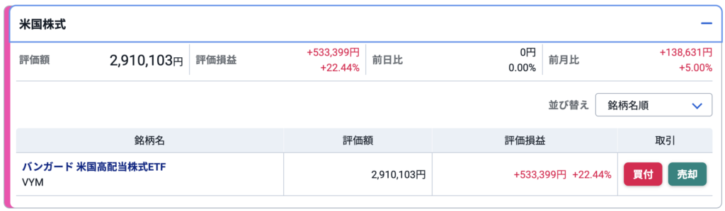 配当目的で昨年投資したVYMの評価損益は、なんと+22 %を超えました!今年から投資し始めたSBI SCHDは、+7.61%とまずまずです。
