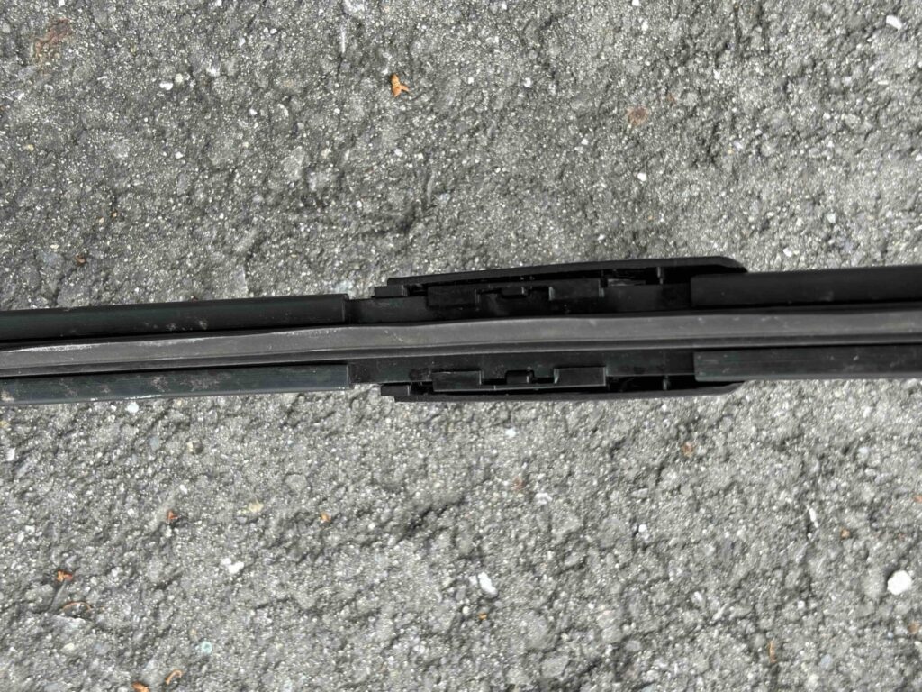 取り外したワイパーのゴム部分を見てみると、ゴムが斜めを向いており、劣化しているのがわかります。これは、ビビリ音でますわ。